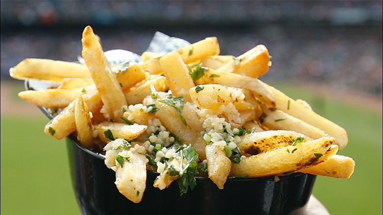 But garlic happens to be the predominant scent that wafts throughout the stadium. Garlic-topped french fries have been a San Francisco Giants tradition going back to 1994 when the team played at the now-demolished Candlestick Park. The recipe was developed by local brewers Gordon Biersch and is an appropriate regional nod to the nearby garlic capital of the world, Gilroy, California.