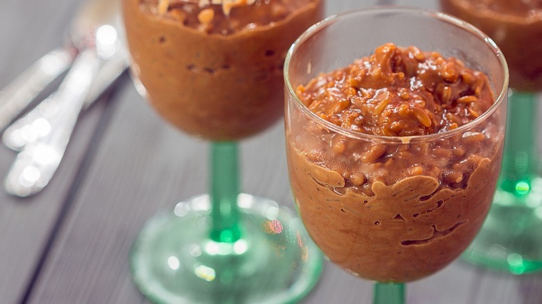 Rice pudding was another popular Depression-era dessert and is still popular now because it can be made with leftover rice. In the 1930s, a favorite version was chocolate rice whip. This cool and creamy dessert doesn't need to be oven-cooked and is made on a stovetop. A small amount of unsweetened chocolate gets heated up with cooked rice and a few other ingredients. After it's chilled, you thicken it with whipped cream and stiffly beaten egg whites. Traditional rice puddings use white rice, but this dessert can be played around with. Using rice as the base, try adding raisins, cinnamon, and dark brown sugar instead of basic white. But for the creamiest textures, always stick with whole milk — you only need a cup.