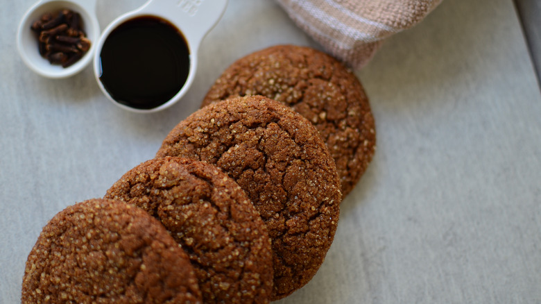 These cookies were dessert stars in the 1940s. Since molasses is so sweet, some claim it was because of World War II sugar rationing. One recipe for these cookies was printed in a pamphlet produced by a flavoring extract manufacturer, called the Joseph Burnett Company, during this era, and it called for a cup of molasses and a cup of brown sugar.