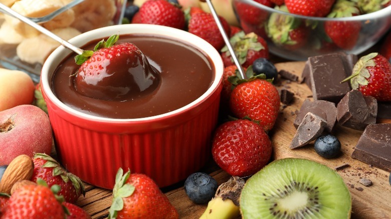The word fondue is French and translates into "to melt," but its history can be traced back to Switzerland, where people learned that bread dipped into melted cheese was scrumptious. Cheese fondue didn't arrive in America until it was introduced at the 1964 New York World's Fair and, around the same time, a Swiss restaurant owner created chocolate fondue during a partnership with Toblerone chocolate.