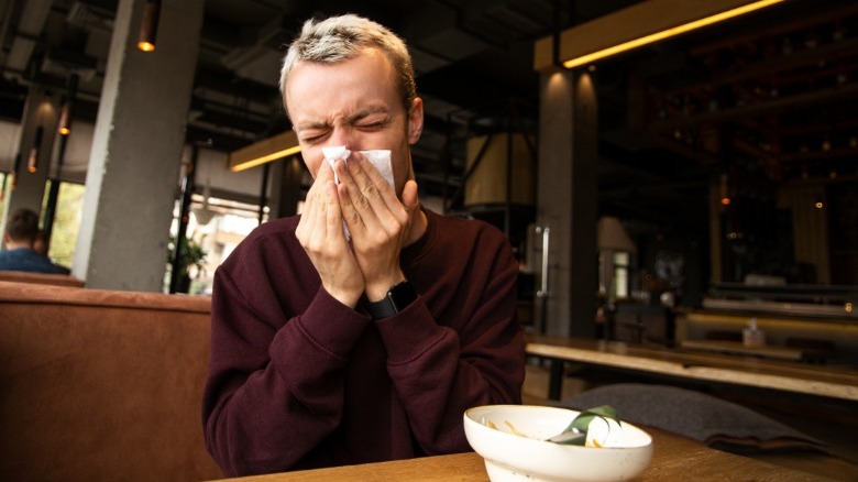 When dining in Japan, it's also important to pay attention to how you eat. Even a quiet audible burp is considered impolite. Loudly munching on or chewing your food is a huge no-no. We understand that there are times you might need to blow your nose — for example, if you're sick. Though it's better to avoid dining in restaurants if this is the case. If you do have to blow your nose, always excuse yourself from the table and go to the restroom to do it out of sight from your dinner guests.