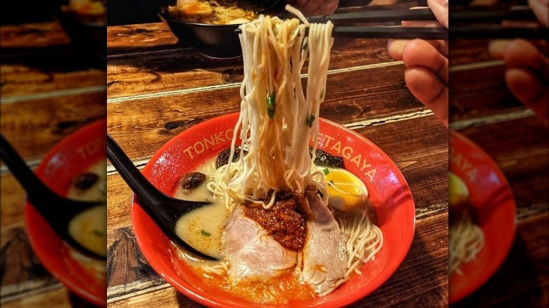 Using chopsticks is recommended at ramen-ya shops. However, don't be afraid to ask for a fork if you're struggling — nobody will judge you — and the dish will taste just as tasty!