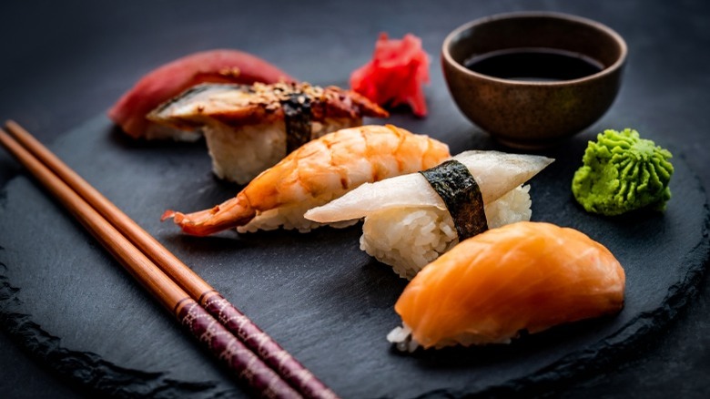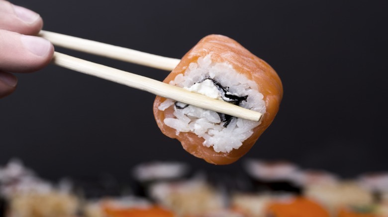 However, nobody will judge you if you can't fit an entire sushi roll into your mouth in one bite. You might find this happens if you're eating particularly large or decorative sushi rolls with lots of toppings. If you need to take two bites, do so cleanly, and don't let the sushi rice fall apart into your soy sauce. This brings us nicely to the next point on our list. It's a really important one, too!