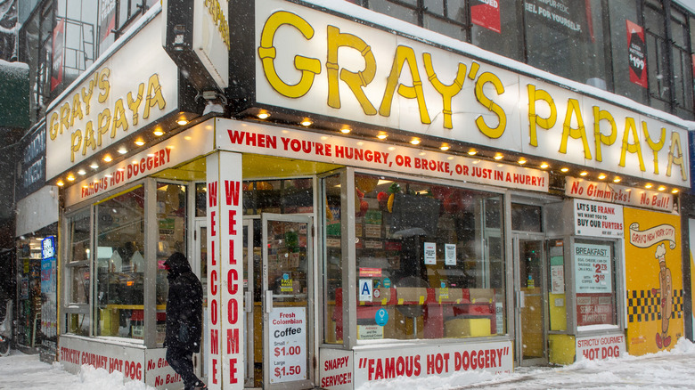 Perhaps one of the most notable examples of papaya and hot dogs making for strange bedfellows can be found in New York — more accurately, Gray's Papaya in the Upper West Side. The restaurant is famed for its delicious and modestly priced hot dogs and papaya juice, which is supposedly a popular beverage that's ordered alongside the chain's hot dogs. Another famous restaurant in New York City is the aptly-named Papaya King, a restaurant that has received praise from not just hundreds of New Yorkers but also from famed chefs and critics like Anthony Bourdain and Martha Stewart.