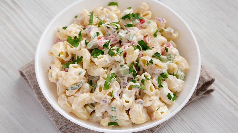 If you're wondering where macaroni salad reigns supreme, look no further than Hawaii. In this tropical paradise, macaroni salad is a lunchtime hero. It's used to complement a protein of choice. The mayonnaise used for Hawaiian macaroni salad is often thinned with milk to make the dressing more palatable. But that's not all. A few essential ingredients like carrots, red onion, vinegar, and Tabasco take this salad to the next level.