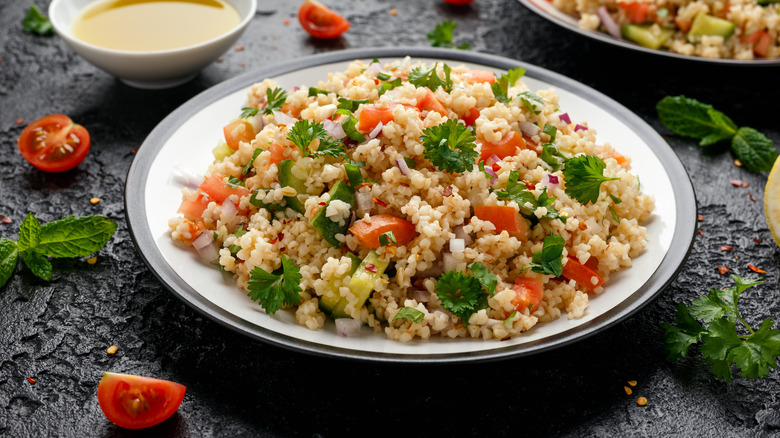 This salad has become a favorite among vegetarians, as it's very nutritious (per Livestrong). The secret to a mouth-watering tabbouleh salad is using fresh herbs and lemon zest. These refreshing flavors make it the perfect accompaniment to traditional Arabic meat dishes. Don't settle for the mundane. Take your taste buds on an adventure with Lebanese tabbouleh.