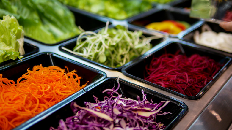 Taste of Home reports more fragile fare like avocados and peaches last less than five days uncut before quality visibly suffers. Hardier options like garlic and onions can hit the three month mark before showing their age. All of this means that your produce could be weeks or even months past its pick date by the time it lands on the salad bar where, according to the FDA, leafy greens can then stay up to seven days after being cut.