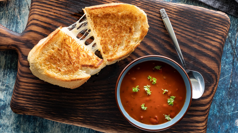 Roasted vegetables are a wonderful alternative to canned soups. Under the Cooking subreddit, many Reddit users have sided with homemade variations that include bell peppers and carrots. Still, some agree that canned tomatoes and roasted vegetables can pair perfectly together. Meanwhile, TikTok user @gabriellevoulgaris shows how easy baking and blending homemade tomato soup is. While garlic bread grilled cheese has been on the rise, you can never go wrong with a crispy parmesan crust or a mayo-covered classic. Perhaps, the two can even be combined to form the ultimate duo.