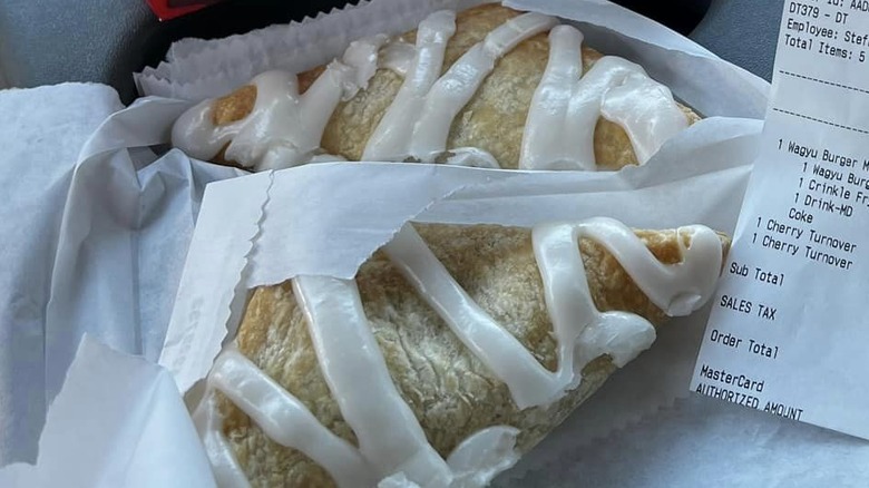 The cherry turnover is much of the same, with 390 calories, and 120 of those calories from fat. This dessert item has 13 grams of fat with 6 grams of saturated fat. You're ingesting 200 milligrams of sodium, along with 65 grams of total carbohydrates. It also features 40 grams of sugar.