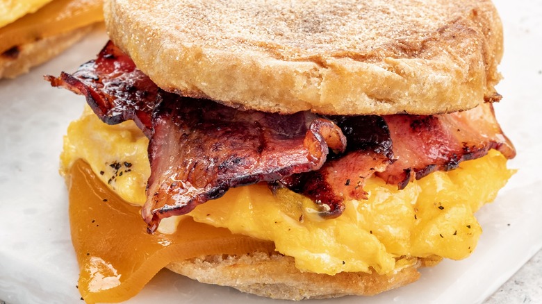 If you choose the bacon, egg, and cheese biscuit at Arby's, you're also taking in 1,720 grams of sodium and 470 calories –- all in a small item. According to the restaurant's menu ingredient list, both the egg patty and the breakfast biscuit also contain modified food starch. The Weston A. Price Foundation states that this type of starch can bring unpleasant side effects, like headache and diarrhea. There is never a good time to experience these digestive side effects, but they're even worse when experienced first thing in the morning. Grabbing one or two of these biscuits before work every day will take a toll on your health long-term. There are better ways to start your day, so skip this breakfast item and find a healthier Arby's menu item to tide you over.