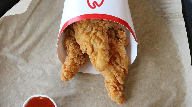This menu item creates further health issues if you, like most people, have a favorite dipping sauce that you eat with your tenders. Arby's has four dipping sauce options — tangy barbecue, buffalo, honey mustard, and ranch. The tangy barbecue sauce brings another 45 calories and 360 milligrams of sodium. With the buffalo sauce, you're eating another 10 calories from fat, along with 720 milligrams of sodium. The honey mustard sauce has 130 calories (120 calories from fat), and 160 milligrams of sodium, and the ranch sauce has 100 calories and 135 milligrams of sodium. To top it off, the dipping sauces are made with high-fructose corn syrup.