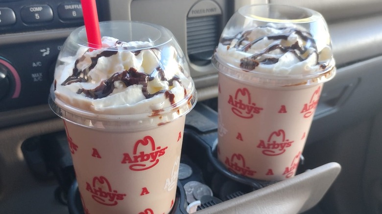 According to the American Heart Association (AHA), women should limit their daily sugar intake to 25 grams, while men shouldn't exceed 36 grams. Every milkshake at Arby's blows these recommendations out of the water. For instance, the snack version of the mint chocolate shake (which is smaller than the small) has a whopping 52 grams of sugar. The small size features 93 grams of sugar, while the medium has 128 grams, and the large has 161 grams. These shakes are also all high in calories, with the large topping out at 1,131.