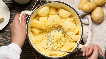 Some people may be divided on blue cheese due to its intense flavor, but potatoes don't benefit from a mild cheese. Blue cheese may get a bad rap as being "stinky," but the reality is the bold flavors that blue cheese offers are well-matched with the natural creaminess of mashed potatoes. Those intense flavors will mellow out to provide a touch of tang and brightness to the finished dish.