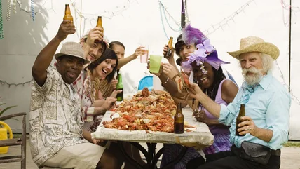 Crawfish boils are popular in the southern United States, where large pots of boiled crawfish are prepared with spices and other ingredients, like potatoes, onion, garlic, corn, and sometimes even shrimp. Crawfish season can vary depending on the location, but it generally runs from late winter to early summer, and crawfish are harvested or fished when they reach a certain size. During the crawfish boil, people often engage in the "pinching tails and sucking heads" tradition, which is exactly how you are supposed to eat crawfish.