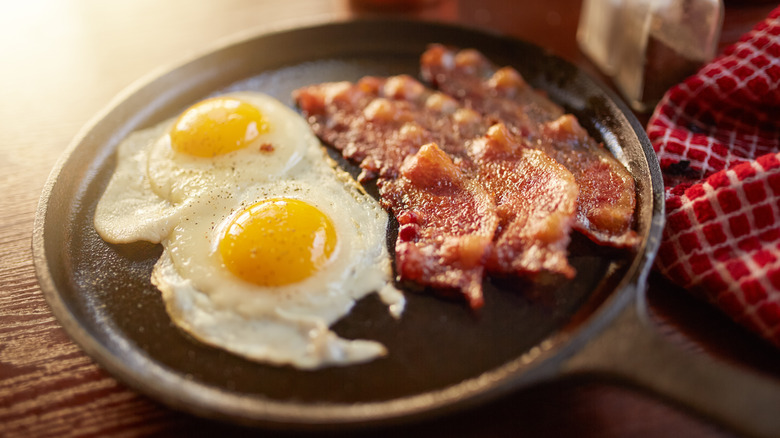 While ordering a plate of sunny-side-up eggs and bacon at your local diner, you probably don't think twice about the health consequences. You'd be right, considering that more often than not, absolutely nothing will happen if you eat runny or sunny-side-up eggs. However, according to the USDA, young children should avoid being fed runny or undercooked eggs to avoid a higher risk of getting salmonella. These also include any sort of "health shakes" that may contain raw eggs, Hollandaise sauce, or any homemade dairy products with raw eggs. It's not just young children who should avoid raw eggs or raw egg-based products. Also included are older people, pregnant women, and people with compromised or weakened immune systems. If you fall into these categories, avoiding raw eggs or eggs that may have runny yolks altogether is a good idea.