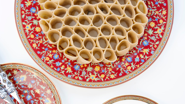 Trypophobics, beware: honeycomb pasta is not for the faint of heart. This dish was posted by Rothfuss in 2021 and has since garnered over 17 million views for its intricate beehive-like design. The video shows Rothfuss inserting mozzarella sticks into vertical rigatoni noodles before layering them separately with sauce, beef, and more cheese. This odd preparation makes the dish appear more like an Italian shepherd's pie or a second attempt at Rachel Green's Thanksgiving Trifle in "Friends."
