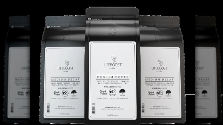A steaming, freshly-brewed cup of coffee with a splash of cream, a whipped coffee, or the perfect cold brew can be the ultimate start to your morning. Or it might be the afternoon jolt that you've grown accustomed to and simply cannot skip. However, there are a number of reasons to switch up your coffee routine, especially if you've been drinking the same stuff for years. For starters, swapping regular caffeinated coffee for a delicious decaf brew is a great option if you're cutting down on caffeine or calories, are pregnant, revamping your sleep schedule, or if you're working on improving acid reflux or gut issues. If the idea of cutting out caffeine starts makes your hands shake and your forehead sweat, there's good news. Decaf coffee can be just as delicious, and affordable, and some brands even offer added health benefits. Making the switch doesn't have to be a nightmare, if you choose the right decaf brand to ease the transition.