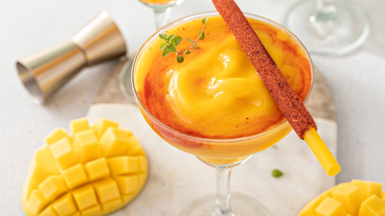If you haven't already figured it out — making a frozen margarita using Italian ice is exceptionally simple. To get started, you'll first want to defrost your Italian ice cup a little bit (just give it a quick rinse). Once you think the cup is thawed enough that you can move the contents around a bit, you're ready to add it to your blender. Conveniently, each cup has just enough Italian ice for one drink, so you'll want to add a full 2-ounce shot of tequila (blanco or reposado) for each container used. Hosting two friends? Chuck a trio of Italian ices in the blender with 6 ounces of booze, then blend at the highest setting until smooth. That's it, seriously, that's all you need to do. Pour the contents of your blender into your preferred glasses, hand them to your thirsty pals, and enjoy.