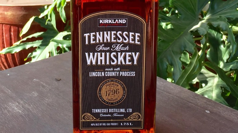Take one look at a big black bottle of Kirkland Signature Sour Mash Tennessee Whiskey and you'll notice it looks familiar. In addition to looking like a bottle of Jack Daniel's, a customer said on Reddit that it even tasted almost exactly like it. However, they noted that it was "sweeter and more mellow than Jack." According to Forbes, this Kirkland spirit is made by Tennessee Distilling and is likely made with a mash of 70 percent corn, 15 percent rye, and 15 percent barley.