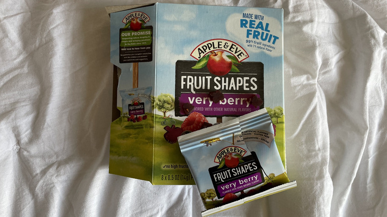 Likely most renowned for its apple juice, Apple and Eve also applies its "keeping it simple" philosophy to its fruit snacks. The brand boasts that its version of the treats is made with 99% real fruit. And the remaining 1% percent is composed of natural (not synthetic) flavors. For $2.99, you can buy eight 45-calorie pouches of Apple and Eve's version of this childhood favorite. However, despite the brand's commitment to using real fruit, each serving of this snack offers 10 grams of sugar (8 grams of which have been added) and only 110 milligrams of potassium. And while the taste of Apple and Eve's apple juice put the brand on the map, its fruit snacks' flavor leaves much to be desired.
