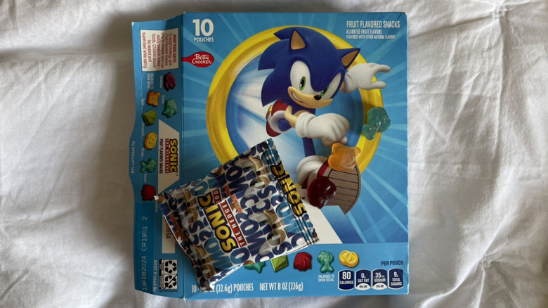 The last member of the General Mills fruit snack clan, Betty Crocker is known for two things: its cake mixes and partnering up with the likes of Star Wars and Mickey Mouse to create half the gummy market's character-shaped fruit-flavored snacks. However, while kids might enjoy chomping down on their favorite Sonic the Hedgehog character and parents are likely pleased to only have to pay $2.99 to score 10 packages of the treats, these fruit snacks are far from an ideal afternoon snack.