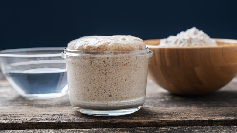 Plastic and glass containers may both be choices, but one thing's for sure: you want to avoid using metal for your starter. According to baker Carroll Pellegrinelli (via Southern Living), the fermentation process can corrode metal. Whether you choose plastic or glass, it's time to get that starter going.
