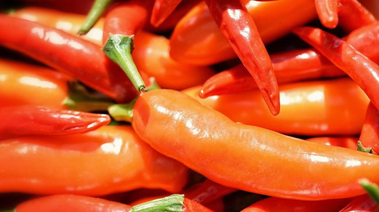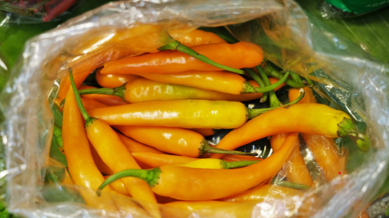 While the bird's eye chili is a classic choice for die-hard Thai chili fans, the prik kariang (or karen chilies) is a truly authentic Thai gem. These little chilies are more expansive and have pointy tips. Unfortunately, finding them outside specialist Asian supermarkets can be challenging, but if you stumble upon them, don't hesitate to try them. One Twitter user shared he managed to find those in the fresh market in Hat Yai on his trip to Thailand, as the vibrant pastel hues of the karen chilies caught his eye.