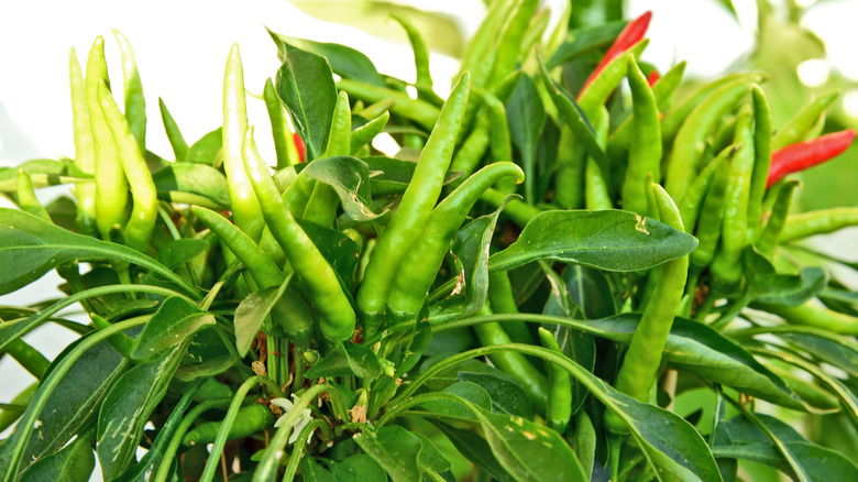 Bird's eye chilies are indispensable in popular Thai dishes such as green papaya salad and pad kra pao (Holy basil chicken stir-fry). These small chilies pack an extra spicy punch to elevate any recipe, but if you want to create an authentic Thai experience, try bird's eye chili in your curry pastes, soups, or stir-fries. These chilies are also a staple ingredient in Thai condiments, like nam prik kapi (Thai shrimp paste chili sauce). A note of caution: If you're not a fan of too much heat, you should skip to some milder Thai chili varieties.