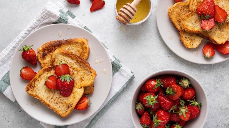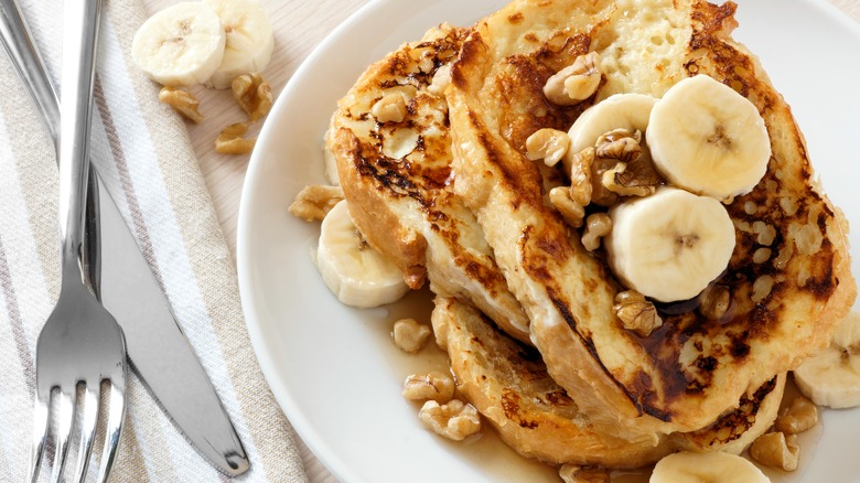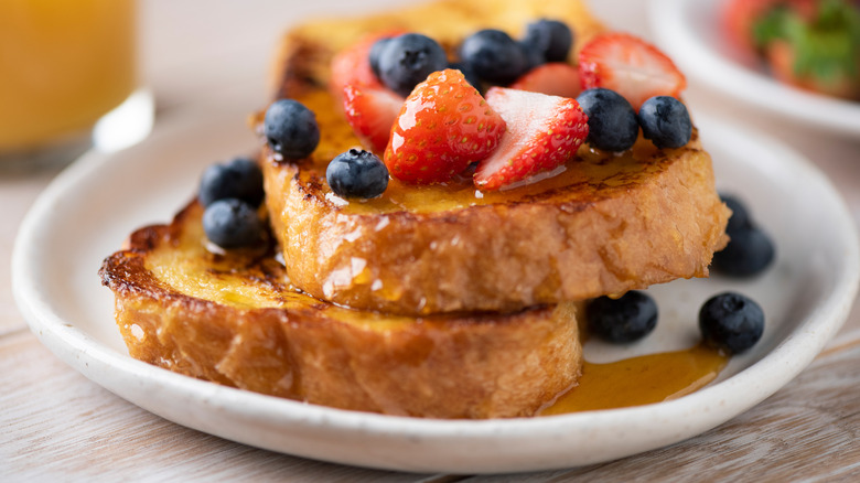 While eggs are commonly used in French toast recipes, you can use yogurt in replace of the eggs to make French toast. All you do is mix 8 ounces of vanilla yogurt, a splash of milk, a pinch of salt, and a dash or two of cinnamon. Whip it all together until it is thick, similar to a custard texture, then spread it on either side of the bread and cook it in whatever method you choose. "This recipe is proof that there's nothing boring about having yogurt for breakfast," shared Danielle Deavens, entrepreneur, writer, and former magazine editor, via The Kitchn.