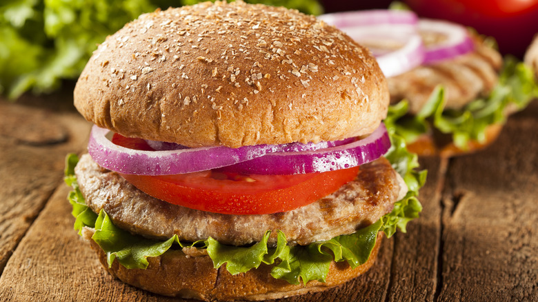 Turkey burgers often get an unfairly bad rap. Sure, ones that aren't made well can be the driest patty between two buns you'll ever try. But it's not as dire or black and white as that. Many people prefer to cut down on red meat for a variety of reasons that range from personal taste to health concerns and environmental reasons. And ground turkey really can do almost anything ground beef can do, with a lower saturated fat content to boot.