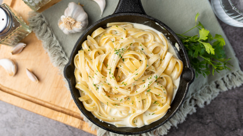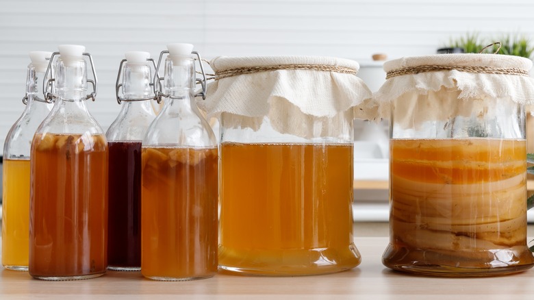 When making a creamy pasta sauce, add a drizzle of kombucha to the pan once the veggies are cooked. Then, reduce as you would with wine before adding cream, cheese, seasonings, and noodles. The added kombucha will offer a zesty bite to the meal, unlocking newfound flavors that would have otherwise been concealed. If you're concerned about the smell or taste of vinegar affecting the profile of your pasta, there's no need to fret. As with wine, the heat neutralizes these notes and makes them work with added ingredients rather than against them.