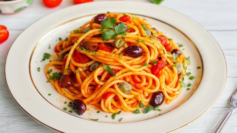 Every pasta shape has its own particular purpose. Spaghetti's medium-thin size makes it ideal for cooking with a variety of sauces. You can't go wrong with a hearty dish of spaghetti and meatballs, of course. Creamy sauces like carbonara also blend seamlessly with these circular noodles. If you're looking for thick, long, strands in your dish, however, fettuccine — aka "little ribbons" — is the noodle for you. This variety of pasta works well with classic alfredo sauce, as the wide shape perfectly soaks up such heavy, dairy-rich goodness. Linguine fits right in between spaghetti and fettuccine, as it's somewhat flat and thin. This allows it to adapt to a range of ingredients, allowing you to create everything from linguine with garlic and oil to linguine with clams.