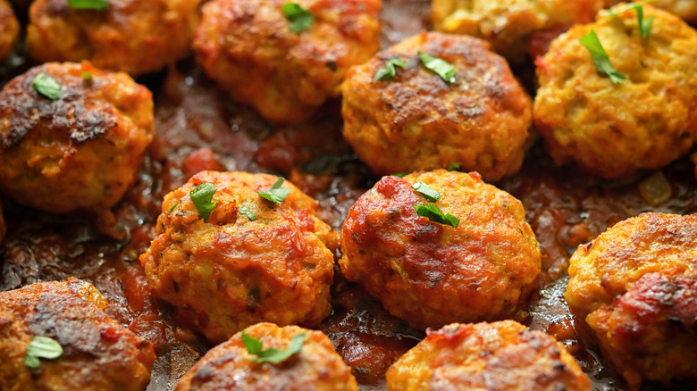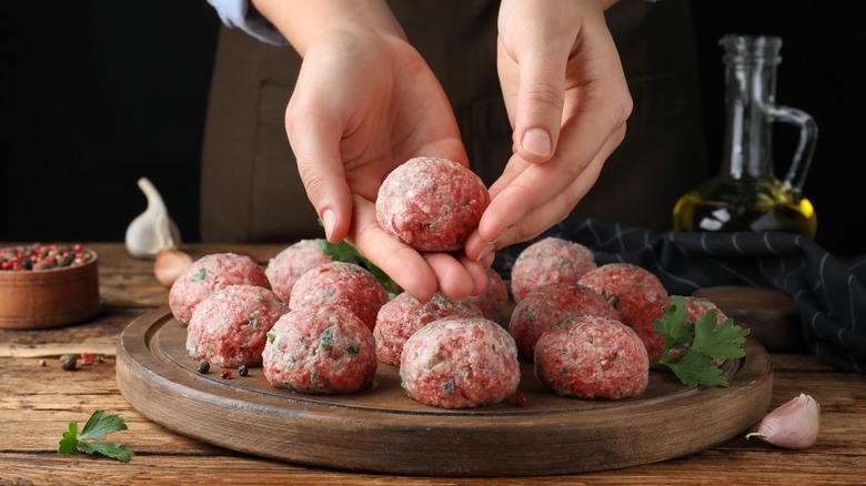 It's no secret that eggs contribute hardly any taste to meatballs, however, they are essential to the texture. Eggs prevent meatballs from falling apart when they cook by acting as a kind of glue to bind together the other ingredients. This is what ultimately gives meatballs their signature consistency, but eggs aren't the only ingredient that can accomplish this. Mashed potatoes can also act as a binder in meatballs, and are perhaps even more effective at preventing them from becoming tough and crumbly.