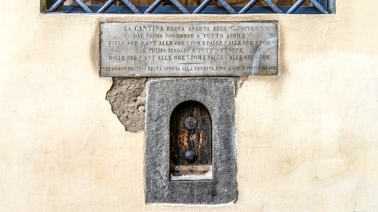 Wine windows are exclusive to the Tuscany region. Around 150 of the roughly 250-total wine windows — or "buchette del vino" in Italian — exist in the region's capital city of Florence (via NPR). That's approximately one window for every city block. Impressively, there seems to be consistency regarding dimensions; windows feature curved arches and measure eight inches wide by twelve inches high.