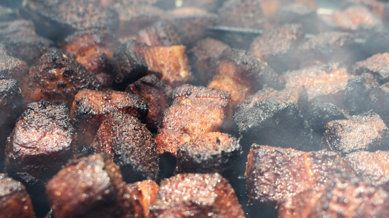 No dish better exemplifies this transformation from rejection to reverence than burnt ends. Some people may be unfamiliar with this treat because it isn't as famous and widespread as other barbecue classics, but once you've tasted burnt ends it's easy to see why they could be considered a pitmaster's favorite. There's simply nothing else like them. The little beef nuggets are smoked to the point of forming a thick black crust that adds a unique, almost crunchy texture and strong umami flavor boost. If you've eaten smoked brisket, you're surely familiar with the smoke ring and the thin layer of bark along the edges of each slice. Well, imagine if that was the entire cut in and of itself.