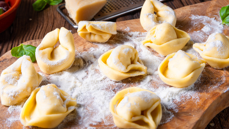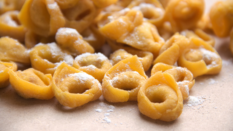 If you try this tortellini trick and love it but can't eat it all in one sitting, don't worry — you can absolutely freeze pan-fried tortellini. The key to freezing any fried food is to make sure it cools completely before storing it. Also, if you're unsure that you'll need all of the tortellini, avoid adding it to the remainder of the recipe, including the sauce, in case there are elements in the whole dish that don't freeze well. Rather, freeze the tortellini on its own, then heat it and add it to a dish when you're ready to use it. Cooked tortellini will last about three months in the freezer. You can also freeze fresh, uncooked tortellini as well, which will remain at their best quality for up to two months into freezing. The tortellini will still be safe to eat, but its flavor and texture might start to change.