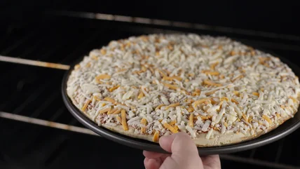 Adding an egg to frozen pizza might seem a little weird at first, but if you think about it, eggs on pizza is not much different than eating eggs with toast and cheese for breakfast. In fact, an egg will punch up the protein factor, which will keep you feeling full and satisfied longer, as well as adding a creamy richness to the flavor —just like they do for ramen.