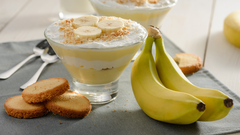 True to the chain's Southern roots, Banana Pudding is the top-tier flavor you'll find on Cook Out's milkshake menu. Just like the strong barbecue opinions you'll find across the chain's home state of North Carolina, people are just as preferential when it comes to this dessert. Some people love banana chunks in their banana pudding, and others don't; the common denominator, though, is generous amounts of Nilla wafers. The shake's wafers contribute the perfect vanilla cookie crisp balanced with natural banana flavor from smashed bananas; it's truly as if you were taking a bite of banana pudding. There's already a hearty amount of Nilla wafers in this shake, but you can always ask for more. You won't find a milkshake quite like this anywhere else, so grab one next time you're at Cook Out.