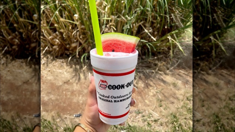 Sweet summertime is only made that much sweeter with the reintroduction of the Fresh Watermelon milkshake. Cook Out takes slices of ripe, juicy watermelon for a fruit-forward, cold treat. The watermelon pieces and juice provide a refreshing flavor while vanilla adds a creamy base. It's definitely an acquired taste, as one Reddit user proclaims, "The watermelon shake is one of the few things in my life I have ever spit out of my mouth. It's vanilla ice cream with chunks of watermelon and those two things should never go together." Regardless of where you stand, kudos to Cook Out for sticking with real, fresh fruit over fake syrup.