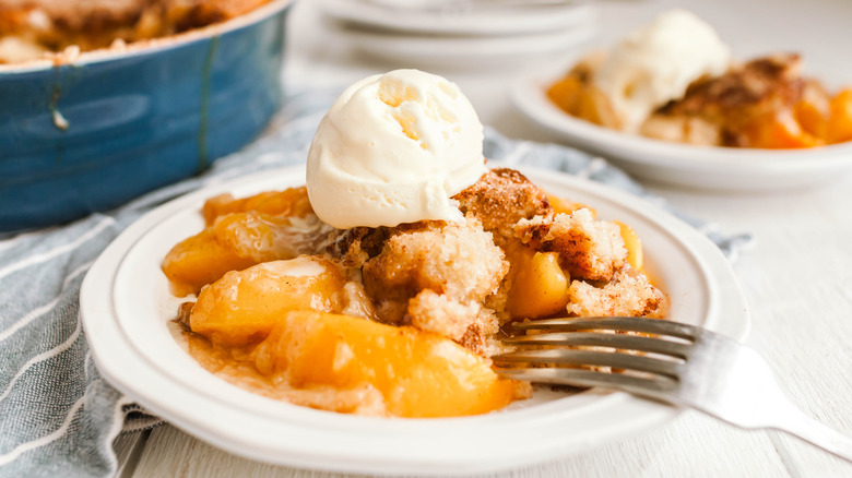 Peach cobbler isn't just a dessert shared at summertime backyard barbecues and potlucks. This dessert has a deep history dating back to the first American colonies. In milkshake form, the Cook Out shake covers all the bases of the traditional recipe with generous amounts of peach slices, Nilla wafers, plus vanilla ice cream. Juicy pieces of peach and bready, vanilla wafers mimic the peach filling and sweet-savory biscuit topping of the traditional dessert to a "T." The vanilla ice cream brings it all together, giving the shake creamy richness and depth, mimicking how the frozen treat is served on the side with peach cobbler. Spoon alert: The peach bits may be a bit tricky to drink through a straw, so be ready to pop the lid open.