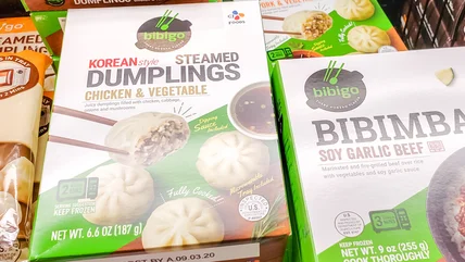 Amongst the rows of fluorescent lit freezers are all of the snacks you could imagine. We're focusing on one, though: those glorious boxes of Bibigo dumplings. If you're not familiar, we're talking Korean dumplings (also known as mandu) — perfect pockets of dough filled with meat and veggies and delicious, succulent broth.