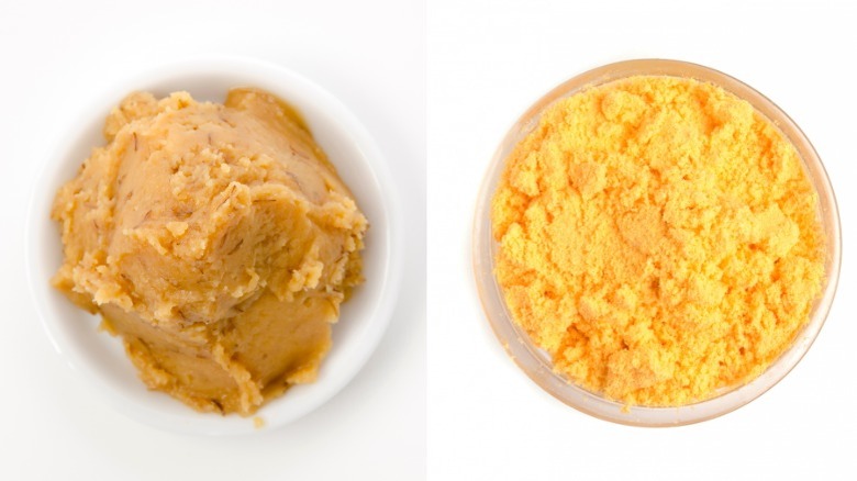 For those on a plant-based diet, creamy concoctions can be hard to come by. That's because most creamy sauces are made from milk, heavy cream, cream cheese, or butter — which all contain dairy. "Creamifying" plant-based food can sometimes be painstaking. Incorporating flour or nuts like cashew and walnuts into plant-based dishes may be cumbersome and complicated for many. Though creamy sauces and dishes may have previously been difficult to whip up for vegans, there is now an easy way to add creaminess and depth to nearly any dish thanks to the holy trio — coconut milk, miso, and nutritional yeast.