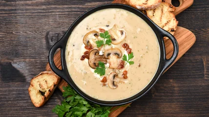 Cashews are a great plant-based ingredient to make creamy soups and sauces with. Simply soak the cashews overnight to soften them. Then, blend or grind the cashew with water to produce a creamy mixture. This can also be used to make creamy vegan mac and cheese. Additionally, to thicken any soup, stew, or liquid base, you can create a slurry using flour or cornstarch, which you may have right in your pantry.