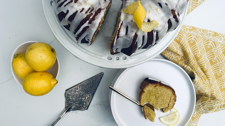 With the cake cooled and glazed, the only thing left to do is slice and enjoy. Vergara suggests that "a glass of champagne or a nice cup of herbal tea pairs well with this cake," though you can also enjoy the refreshing, citrusy flavors all on their own. And, Vergara notes that you can store leftover slices in an airtight container for up to a week — remember, this cake tastes even better a day or two after it's baked!