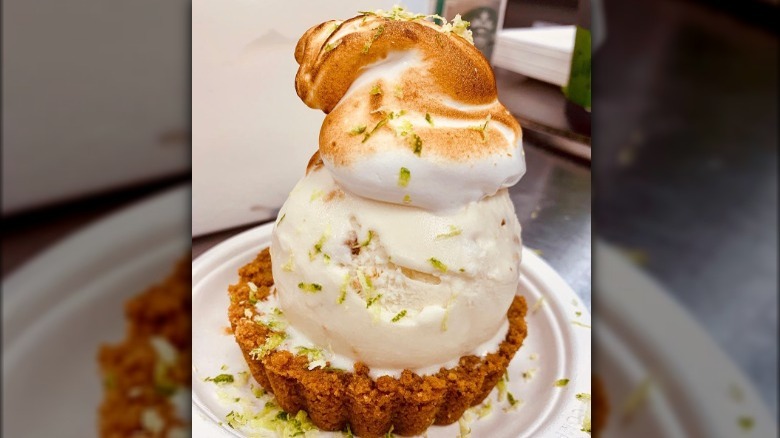 Key lime pie is usually made with just a few ingredients, including key limes, sweetened condensed milk, egg yolks, and a graham cracker crust. While key lime pie is a bit of an unconventional flavor for an ice cream sundae, the truth is that it's amazingly delicious — especially at Proper Ice Cream. Proper Ice Cream is a small ice cream shop with locations in South Florida, which is a perfect spot to feature key lime flavored ice cream.