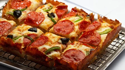 Detroit-style pizza may be made out of the same ingredients as other pizzas, but it has a few key differences. It has a crispy, caramelized crust, topped with little cups of pepperoni that have curled into tiny meaty bowls of oil. But the first thing you would probably notice about Detroit-style pizza is that it's rectangular instead of round.