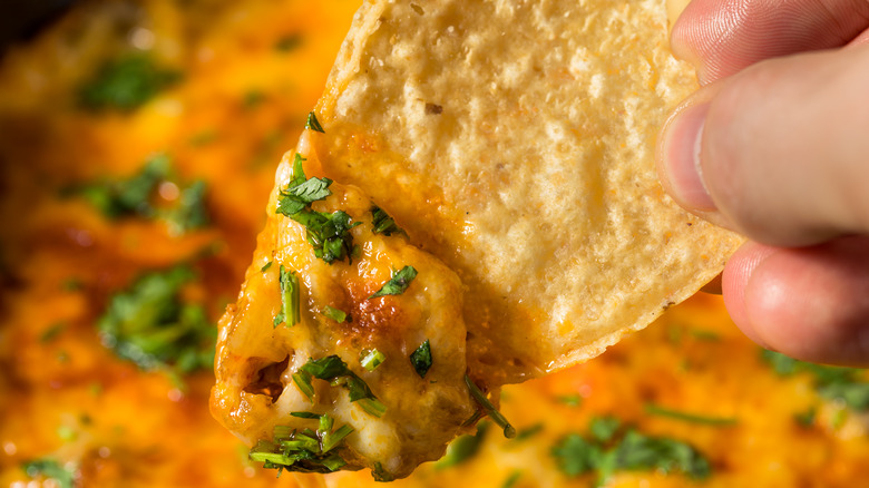 And no, we don't mean adding Velveeta or store-bought nacho cheese dip to any old taco recipe. We're talking about making these tasty tacos specifically using queso fundido, which creates a more satisfying, stretchy, and cheesy experience than the more liquidy chile con queso that is favored and savored in Texas. From earthy, buttery Oaxaca cheese to the tangy cheddar-like sharpness of Chihuahua cheese, it's not all that hard to find new ways of incorporating different varieties into the mix to create unique, unforgettable queso fundido tacos that are sure to impress.