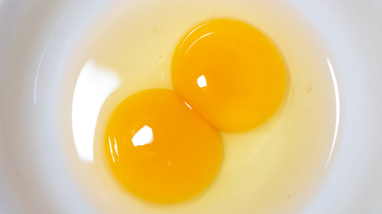 If you cracked an egg into your pan and found that you have two whole yolks, you may think of one thing: twins. It's not unreasonable to think that, considering that the yolk is a food supply for an embryo. Wouldn't it make sense for an egg with two yolks, then, to be a sign that this egg would have had twin chicks?
