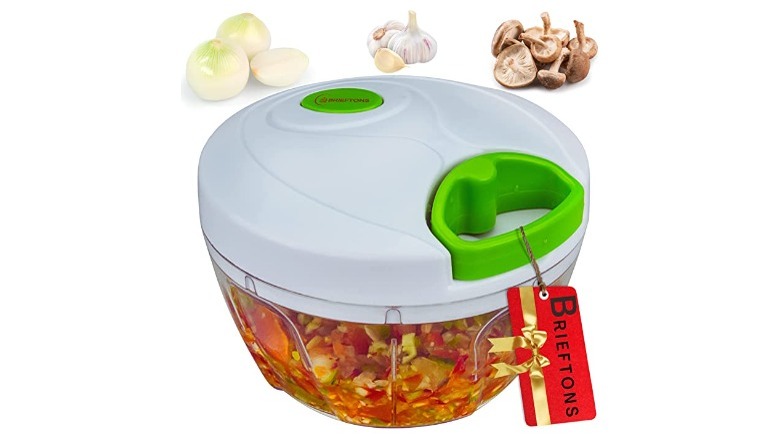 You don't need an electrical outlet to do a time-saving chop in your food prep. A manual device from Brieftons will get the job done, and for that reason, it's an excellent companion on camping trips. There's a solid trio of blades that fit into the base, and once you load in your desired ingredients and lock in the top, all you need to do is rip the cord. How coarse or fine you want the chop depends on how many tugs you take.