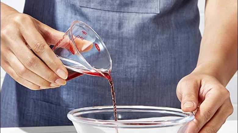 This product holds two ounces, which is a quarter of a cup. It's also designed with a convenient spout so you can pour the contents without making a mess.